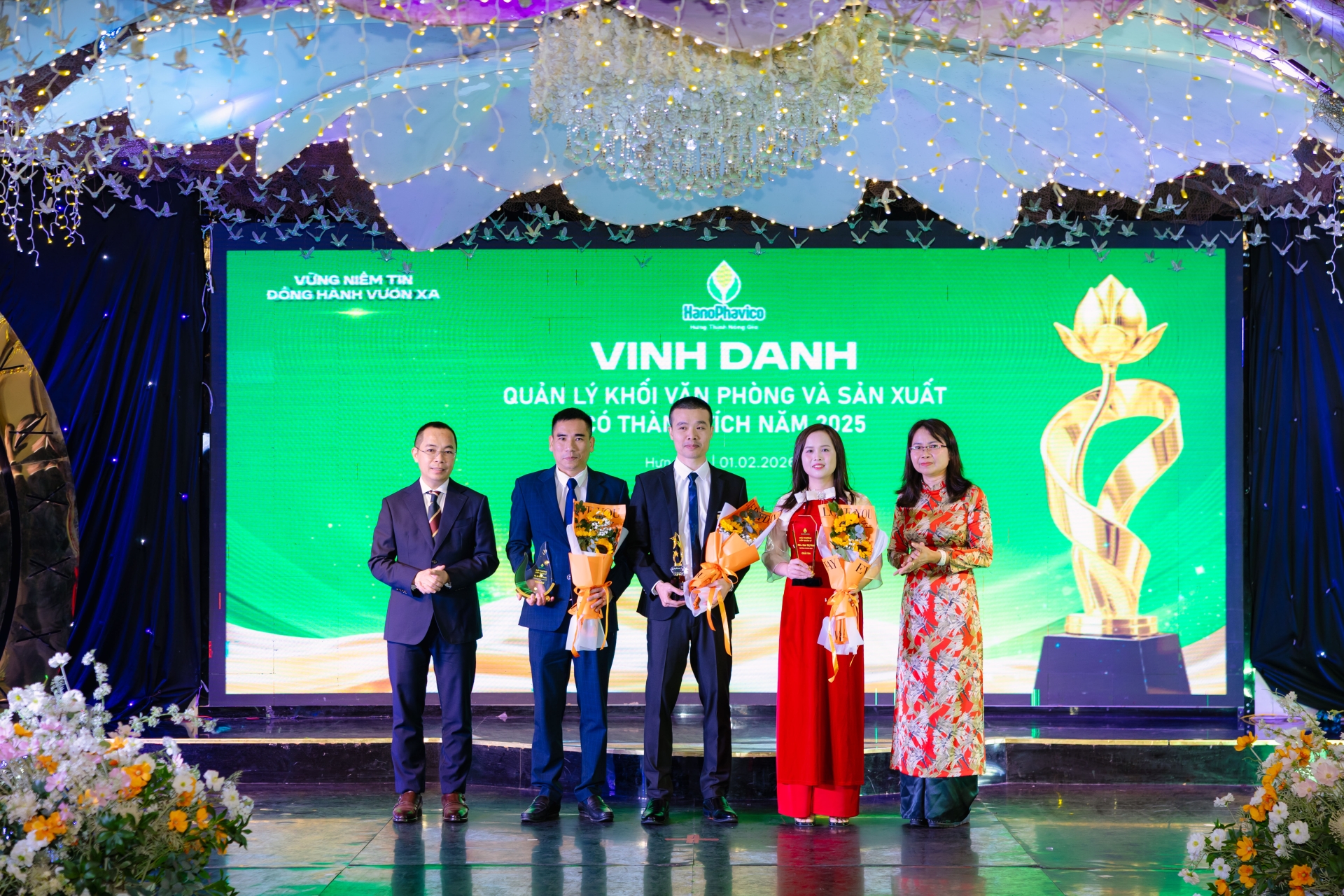 Trong khuôn khổ chương trình, HanoPhavico & Panda đã tổ chức vinh danh và khen thưởng các cá nhân, tập thể đạt thành tích xuất sắc trong năm 2025 ở nhiều khối: kinh doanh, văn phòng, sản xuất và quản lý. Bên cạnh đó, các cán bộ nhân viên gắn bó 5 năm cũng được tri ân như một sự ghi nhận cho quá trình đồng hành bền bỉ cùng doanh nghiệp.
